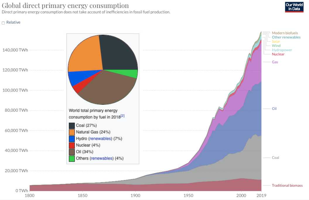 석유, 석탄, 천연가스는 묶어서 Fossil Fuel로 불리는데, 2021년 현재에도 세계 에너지 사용의 80% 이상을 차지하고 있다. 물론, 이 중에서도 가장 많이 쓰이는 에너지원은 석유이다.