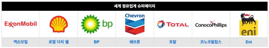 세븐 시스터즈라는 단어가 있다. Supermajor, Oil Major라는 별칭으로 불리는 세계적인 7대 정유사를 통칭하는 말이다. 이 정유사들은 세계의 석유 산업을 주무르며 석유 개발, 정제, 운송 등 전 영역에 걸쳐 막대한 영향력을 발휘했(었)다.
