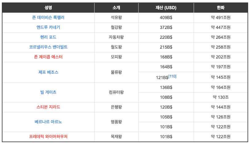 - 반독점법이 생기게 된 이유, 포브스 인류 역사상 최고 출신 부자, 석유왕